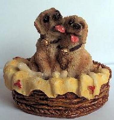 Zwei brave Hunde im Korb, ca. 7 x 7cm aus Polystone
