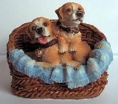 Zwei brave Hunde im Korb, ca. 7 x 7cm aus Polystone