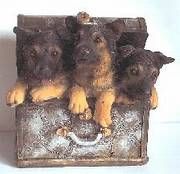 Drei kleine Hunde in der Truhe. 14 x 14 cm aus Polystone